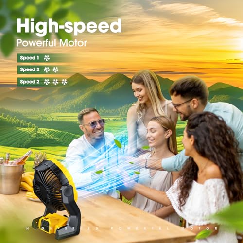 【Powerful High-speed Motor】After market research, we’ve noticed a common issue with camping fan for tents: weak airflow. To tackle this, our portable outdoor fan employs an imported high-speed motor, ensuring powerful airflow with minimal resistance and noise. This means efficient cooling outdoors. We’ve also upgraded the airflow control to a knob design, allowing for precise adjustment.