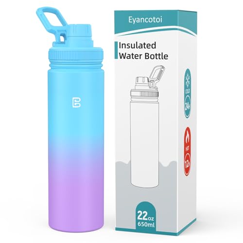 Insulated Water Bottle with Spout Lid, Reusable Stainless Steel Water Bottles with Handle, Leak Proof Sports Water Flask for Gym, Travel, Bike, Camping 22oz(Blue Purple)