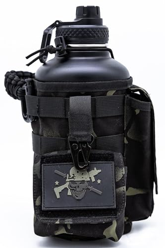 Iron Infidel Battle Bottle – Half Gallon Insulated Water Bottle with Paracord Handle – Large 64 oz Stainless Steel Water Jug & Rugged, Removable Sleeve For Keys, Wallet, Phone (Black Camo 2 Liter)