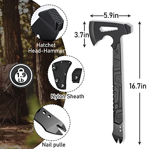 Camping Axe and Survival Hatchet 17.5in Full Tang with 3.7in Stainless Steel Blade,Hammer and ABS Handle for Outdoor Survival Camping Throwing and Everyday Tasks, Black