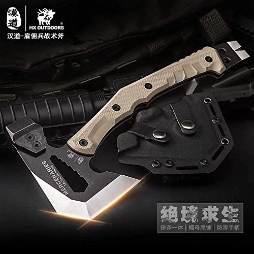 HX OUTDOORS Mercenarys Tactical Engineer Axes Multifunctional Explosion-Proof Axe Camping Artillery Fire Rescue Hammer Hiking Tools,Black