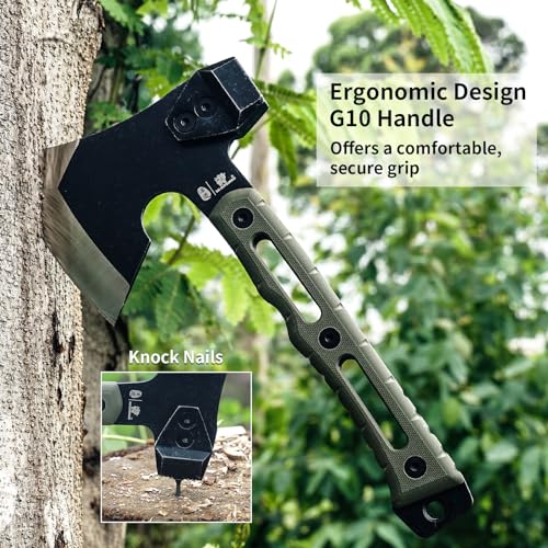 2. ERGONOMIC G10 HANDLE CAMP AXE: The handle of our sharp wood splitting axe is made of high quality and durable G10 materials. Non slip textured surface offers a comfortable and secure grip. Using the small tactical axe, this handle will be capable of taking massive shocks without cracking.