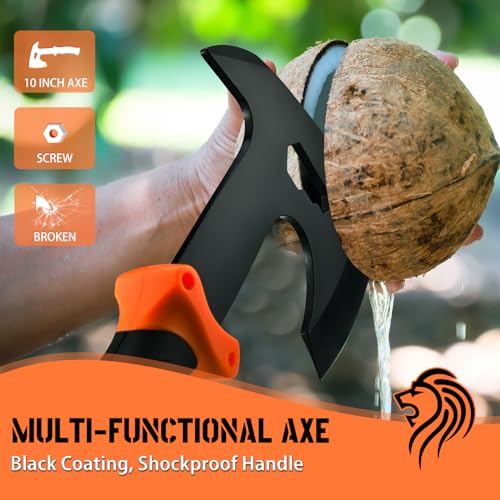 🏕10” Camping Axe And Hatchet With Shock Reduction Rubber Handle – Great for small jobs. It is good for splitting small firewood and and precise cuts. It’s sharp, light weight, sturdy, compact axe to carry while hiking, backpacking and camping.