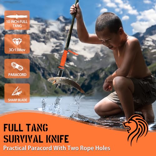 🏕 10” Fixed Blade Hunting Knife with Detachable Rope – Full Tang Fixed Blade Knife means steadiness in hand and the strength to power through puncture and precise cuts. The Detachable Handle rope can be quickly removed for emergency use. You can attach the knife to a stick with the rope for outdoor survival.