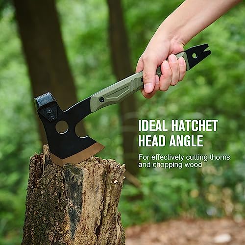 OKNIFE Otacle A1 Survival Hatchet & Camping Axe, 4 in 1 Full Tang Tactical Axe, G10 Non-Slip Grip Tomahawk with Durable Kydex Sheath (OD Green)