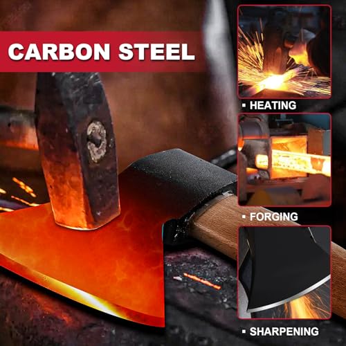 【Sharpened Hatchet Axe】Forged Carbon Steel Heat Treated Survival Tool, Blade is sharp out of the box with blade protector. Features anti-corrosive coating on the head, keeping the tool safe from rust and wear.