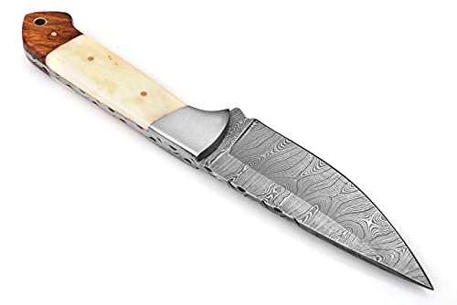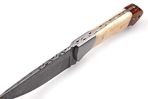Custom Handmade Damascus Steel Fixed Blade Hunting Skinning Knife Edc Survival Camping Outdoor Knives with Bone Handle and Leather Sheath (20101)