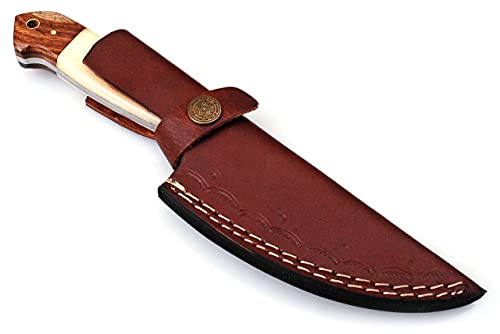 ✔️LEATHER SHEATH :- The fixed Damascus Steel blade comes with a complimentary High Grade leather Sheath . The sheath has a belt loop this practical holder allows you to wear the hunting knife on your belt to ensure that your knife is well protected and allows you to securely and safely carry the knife around.