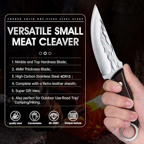 SHARP AND FULL TANG BLADE KNIFE: Preferred stainless steel material, high temperature hardened edge is durable and sharp.Full tang construction, providing greater strength and reliability, weighs tough and stable in your hand.