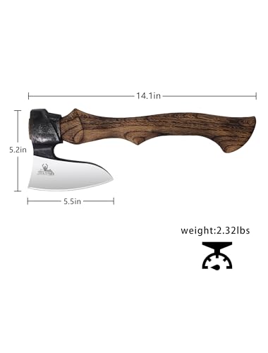 Camping Axes and Hatchets – 14″ Forged Carving Axe with Leather Sheath, Survival Hatchet Splitting Axe for Chopping Camping Survival