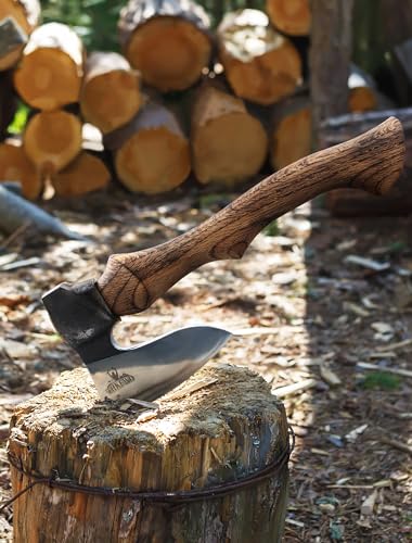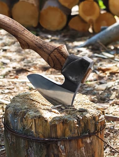 Effortless Handling: Designed with an optimal weight and an ergonomic handle, our camp axe guarantees effortless swinging. Whether chopping wood, securing stakes, or tending to your garden, this forged hatchet is a reliable tool for any outdoor task