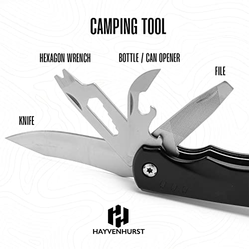 Camping Multitool – Camping Axe – 10 In 1 Stainless Steel Pocket Hatchet Multi tool With Durable Sheath For Outdoor, Survival Gear – Safety Locking Camping Accessories With Wrench by Hayvenhurst