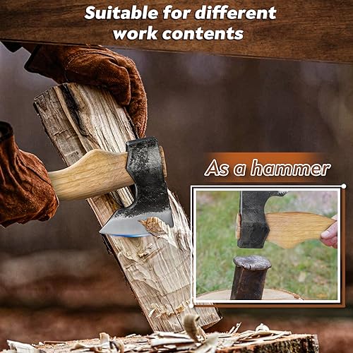 Purple Dragon Camping Hatchet Axe, 13” Small Hand Hatchet, Wood Handle Splitting Axe with Sheath for Outdoor, Forest Bushcraft Garden Survival Carving Chopping Cutting Wood