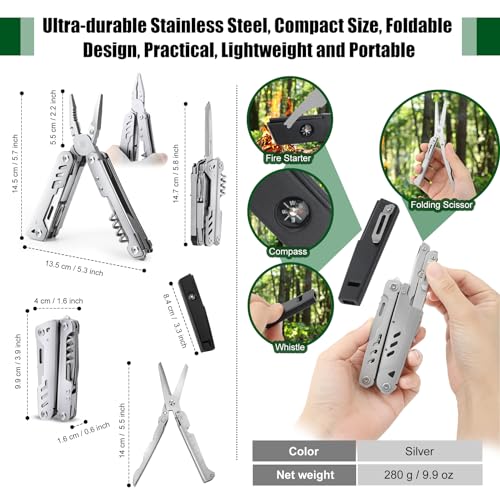 Ultra-sturdy Multitool: The foldable multitool plier is made of sturdy stainless steel, which effectively guarantees long term durability. This multi-plier is a year-round, all-weather tool for users.