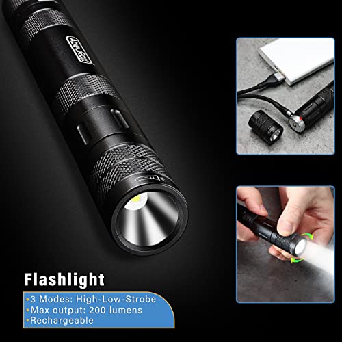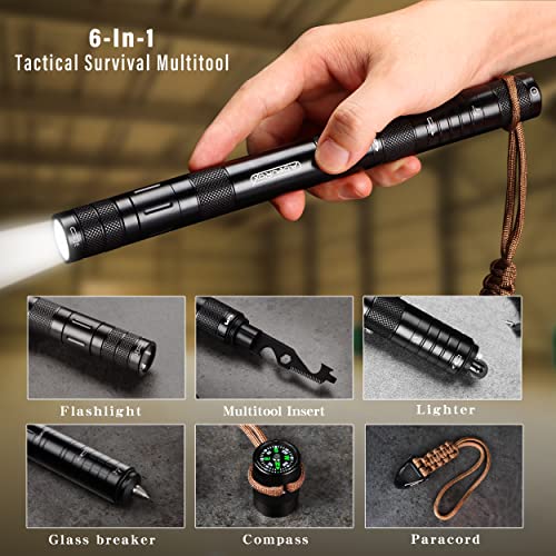 6-in-1 Multitool, Flashlight Multi-tool Kits with Rechargeable Flashlight, Lighter, Glass Breaker, Compass, Paracord, EDC Survival Gadget, Camping Gear, Cool Gifts for Men Women (Black)