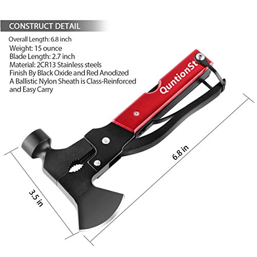 Camping Gear Multitool, Stocking Stuffers for Men, Christmas Mens Gifts for Dad Husband Boyfriend, 16 in 1 Camping Accessories Multitool Hatchet, Camping Tool with Axe,Hammer,Plier,Knife,Bottle Opener
