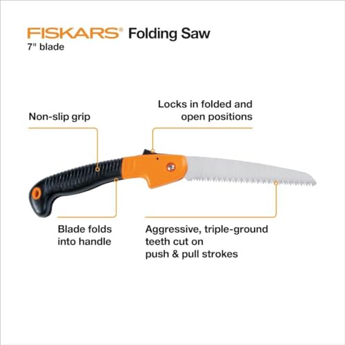 Fiskars Power Tooth Folding Saw – 7″ Folding Blade – Lawn and Garden Tools – Orange/Black