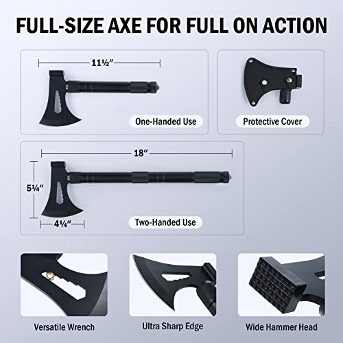 DURABLE MATERIALS: The shovel and axe heads are made from premium heat-treated carbon steel, while the 3-piece shaft boasts aircraft grade 6063 aluminum, all built to withstand your toughest shoveling, chopping, cutting, sawing, digging, trenching, hammering, and gardening tasks while remaining sharp and weatherproof