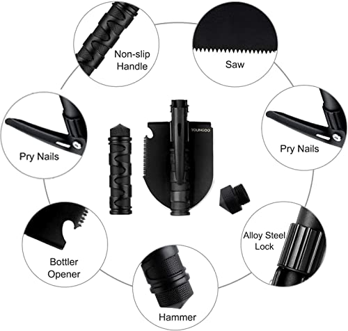 Folding Shovel, YOUNGDO Camping Shovel Survival Shovel, Metal Detector Accessories, Army Trenching Tool with Pickaxe, Digging, Backpacking, Outdoor Hiking, Gardening, Trenching, Car Emergency