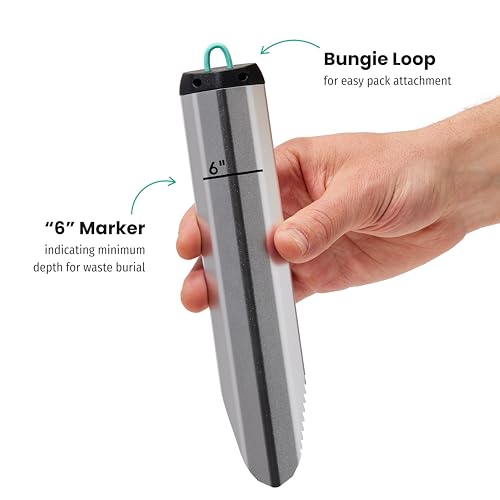 BEST BATHROOM TOOL FOR OUTDOORS: Manage your waste responsibly by using the PACT Shovel to dig an appropriate depth hole for going potty outdoors. This trowel has a depth marker to ensure the most sustainable bathroom practices.