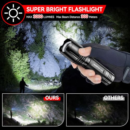 Bonus with 6 Batteries Included: This flashlight package comes with 2 led tactical flashlights high lumens. Keep one in the places you might need instant light like car or home in case of power outage, one in purse or handbag by portable carrying for emergencies. In addition, WdtPro provides 6 AAA Batteries with 2 holders so that you can use the bright flashlight instantly. Plus 2 rechargeable battery tubes so as to bring you more power options.