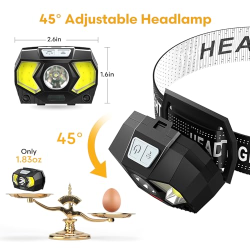 🏃 ✅Adjustable & Ultra-light : Our premium headlamps for adults feature 45°adjustable head to direct light exactly where you need it.The comfortable elastic headband easily adjusts the length to perfectly fit your head size, making it perfect for both adults and kids.Weights only 1.83oz, you’ll hardly notice it.