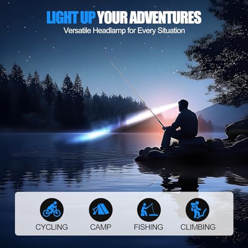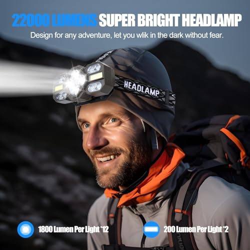 Headlamp Rechargeable, 14 LED 22000 High Lumen Super Bright Head Lamp with Red Light, Waterproof Lightweight Head Light, 8+2 Modes Forehead Head Flashlight for Outdoor Running Hiking Camping Gear