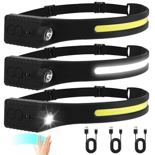 Headlamp Rechargeable 3pcs, 230° Wide Beam Head Lamp, LED Headlamp with Motion Sensor, 5 Modes IPX4 Waterproof Headlamps for Adults, Head Lights Forehead for Camping Running Cycling Fishing