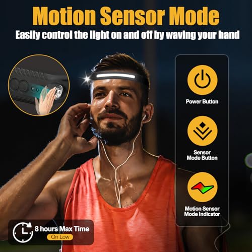 Wide Beam & Wave Induction: This head lamp provides 230° ultra-wide angle illumination and 300FT spot illumination with a COB floodlight strip and XPE spotlight. With motion-sensing technology, you can control the head lights for forehead without touching it, keeping your hands free. Perfect for any task that requires bright, hands-free lighting.