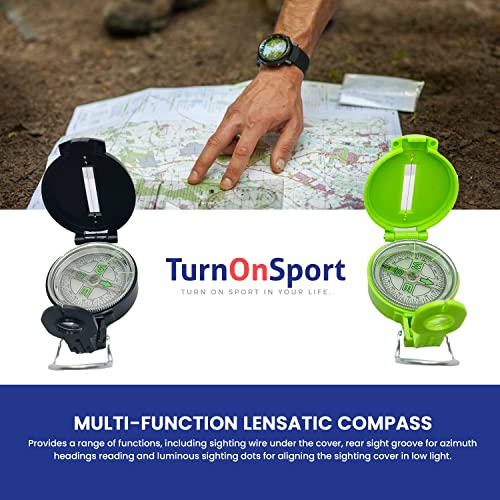 Lensatic Compass Hiking Backpacking Compass | Orienteering Compass Camping Navigation – Boy Scout Compass for Kids | Professional Field Compass for Map Reading – Best TurnOnSport Survival Gifts