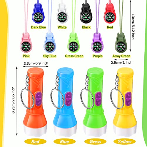 Multiple Color Choices: the mini compass survival has 9 colors, including black, white, army green, grass green, pink, purple, sky blue, dark blue and red color, the mini flashlight keychain has 4 colors, including red, yellow, blue and green color, a variety of colors to meet your diverse demands