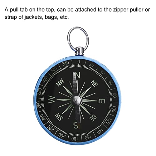 Compass Color: Blue; Compass Material: Aluminum Alloy, Magnet; Compass Dimensions: 44 x 44 x 10 mm / 1.7 x 1.7 x 0.4 inch (L*W*H); Pull Ring Color: Silver Tone; Pull Ring Material: Stainless Steel; Packing List: 1 x Mini Metal Compass