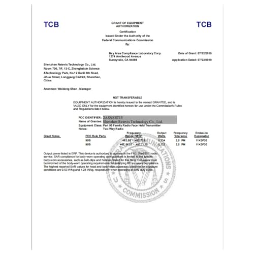Our walkie talkies is only FRS walkie talkies; the FCC ID is 2ASNSRT15;our walkie talkies meet FCC rule part 95;Please buy with confidence