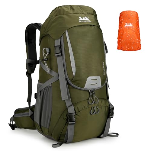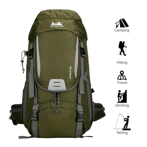 Mountain Land 40L Camping Hiking Backpack with Waterproof Rain Cover Backpacking for Treeking Outdoor Travel Pack Army Green
