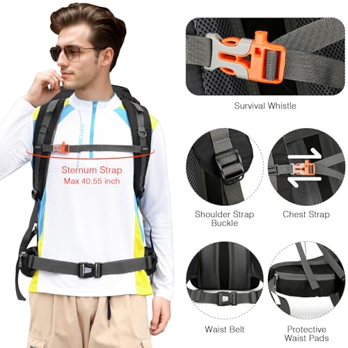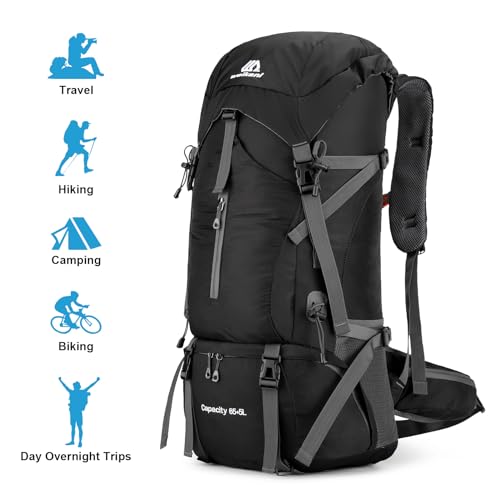 ShowyLive 70L Backpack – Waterproof Hiking Backpack for Men and Women – Lightweight Camping and Backpacking Backpack with Rain Cover and Comfort Design, Black