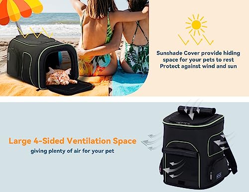 【Comfortable and Durable】 This cat backpack for carrying cats features a well-designed ventilation system with mesh windows on all four sides, ensuring optimal airflow and visibility. The top of the dog carrier backpacks and the front screen window are equipped with windproof sunshades, offering both safety and privacy. This reduces your pet’s stress response to external stimuli while traveling