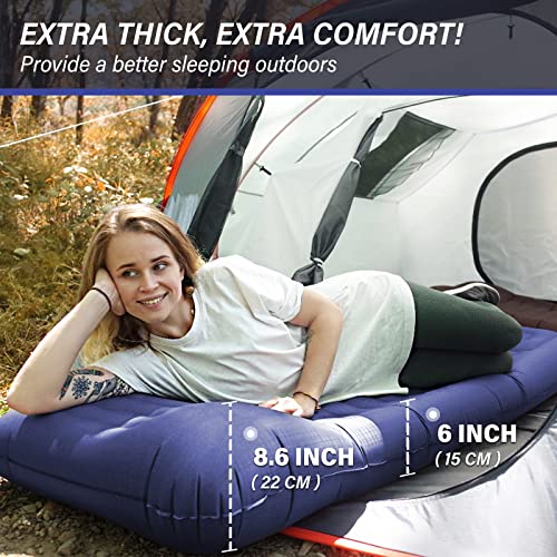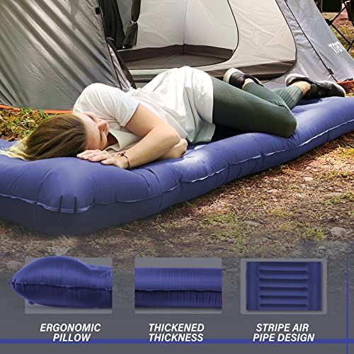 TOBTOS Inflatable Camping Sleeping Pad with Pillow, Thick 6 Inch Ultralight Sleeping Pad with Built-in Pump, Lightweight Sleeping Mat for Camping, Backpacking, Hiking, Tent (Blue)