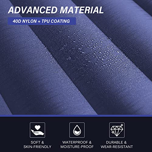 【Camping Grade Material】This sleeping mat is made of ultra-tough 40D nylon coated with a waterproof TPU coating, providing extreme pressure-bearing and durability. The edge of the camping mat is heat-sealed, so you don’t have to worry about air leaks or tears, even under harsh conditions.