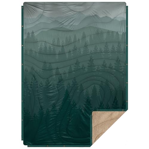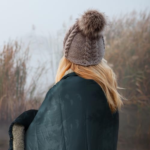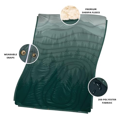Outdoor Camping Blanket with Sherpa Lining, Extra Warm Thick Camp Blankets & Puffy Ultralight Soft Poncho DWR Camping Quilt for Cold Weather, Adventure,Sleeping,Backpacking 78″x 56″