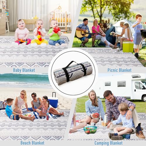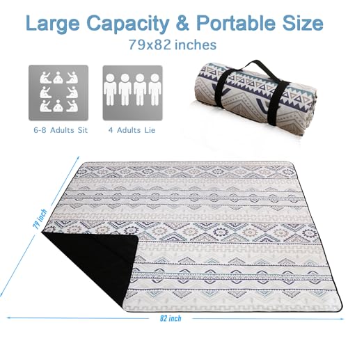 Picnic Blanket Extra Large(79″ x 82″), 3-Layer Thickening Camping Blanket, Machine Washable Outdoor Blanket, Wear-Resistant, Soft and Comfortable, Sandproof Beach Mat for Beach, Park, Lawn(Boho Gray)