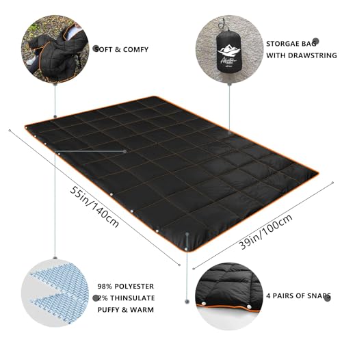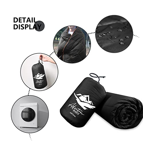 Puffy Camping Blanket,Lightweight Packable Down Alternative Throw Blanket Waterproof Windproof for Outdoors, Travel, Beach, Airplane, Hiking 39×55” Black