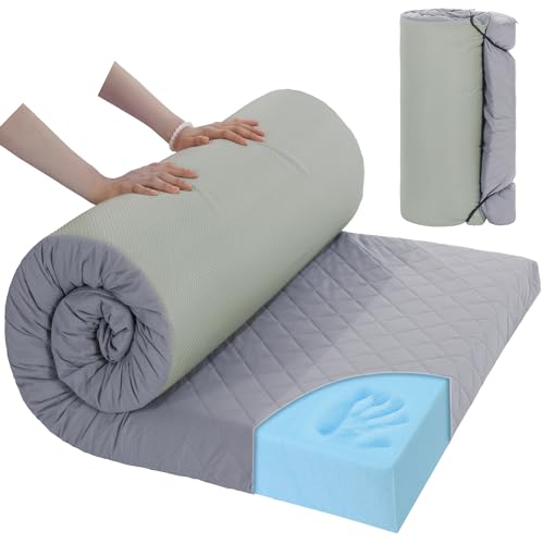 HOMBYS Memory Foam Camping Mattress for Outdoor Sleeping, 3″ Thickness Roll Up Porable Camping Mattress Pad Mat with Quilted Cover for Travel Truck Bed Tent