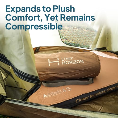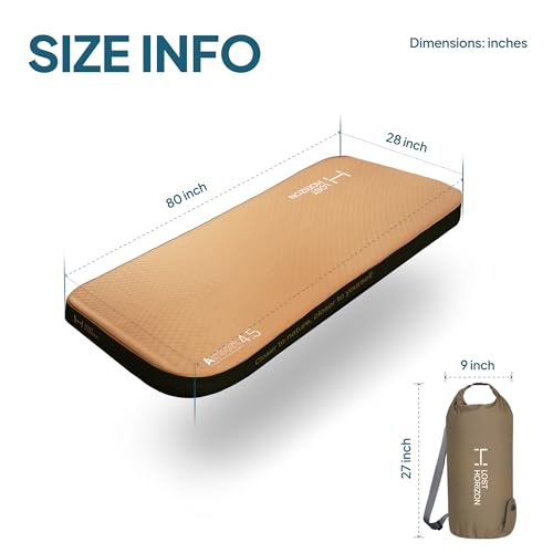 LostHorizon 4.5” Thick Self Inflating Sleeping Pad with Solid Foam, Camping Mattress with Pump Sack, Portable Roll Up Bed, Inflatable Outdoor Mat for Rooftop Tent Car Truck Van, Single