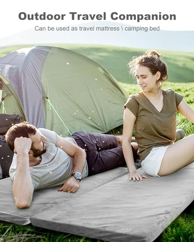 Memory Foam Camping Mattress Pad, 3″ Portable Roll Up Sleeping Pad with Waterproof Cover & Travel Bag, CertiPUR-US