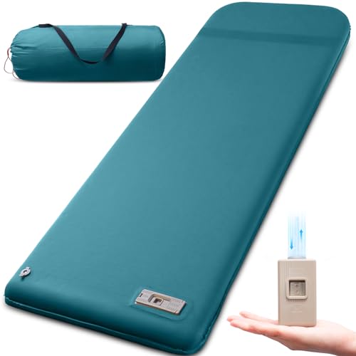 Self Inflating Sleeping Pad with Electric Pump, 3.15″ Ultra-Thick Memory Foam Camping Sleeping Mat with Pillow, 9.5 R-Value Insulated Camping Pad Mattress for Travel Car Tent