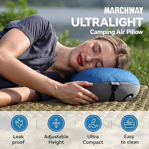 MARCHWAY Ultralight Inflatable Camping Pillow with Soft Washable Cover, Compact Compressible Portable Travel Air Pillow for Outdoor Camp, Sport, Hiking, Backpacking Sleep (Blue)