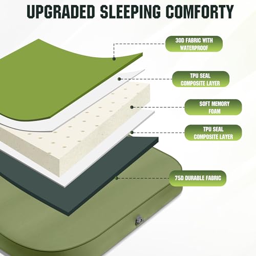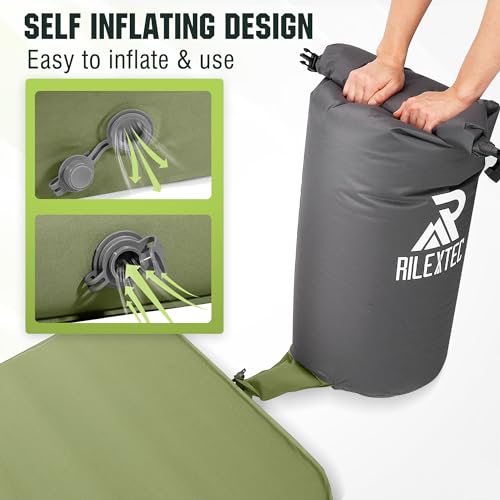 Riextec Self Inflating Sleeping Pad, Camping Mattress with Pump Sack, Memory Foam Camping Pad for Sleeping, 4” Thickness Sleeping Mat for Camping/Travel/Car/Tent, 4 Season Camp Air Mattress,Single