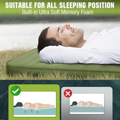 【Premium Comfort & Support】 Featuring ultra-soft & high-density memory foam, our camping air mattress provides superior comfort and support for a restful night’s sleep outdoors or indoors. Our sleeping pad foam conforms perfectly every part of your body whether you sleep on your side, stomach or back. For added comfort, you can adjust the firmness with the pump sack.