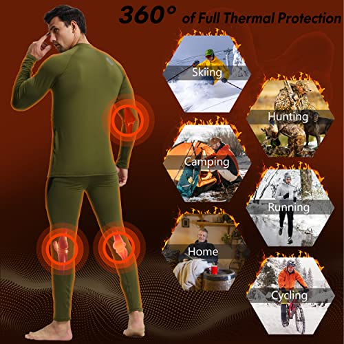 romision Thermal Underwear for Men 2 Pack Long Johns Fleece Lined Hunting Gear Bottom Top Set Base Layer Cold Weather XS-4XL