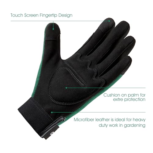 COOLJOB Thorn Proof Garden Gloves with Touchscreen Fingers, Padded Work Gloves for Men, Rose Pruning Gloves with Palm Cushion, Nice Gift for Gardener, Farmer, or Landscaper, 1 Pair, Xlarge, Green